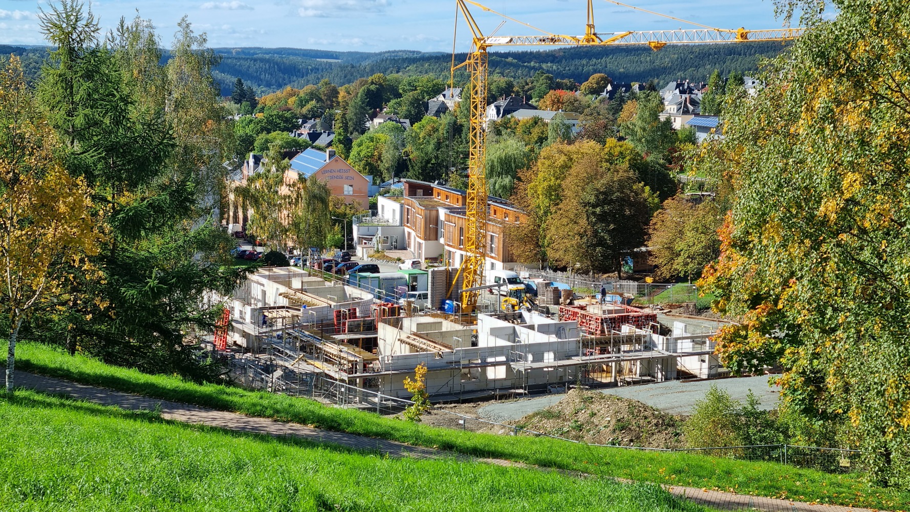 Unser Neubau in der Goethestraße nimmt Formen an. Die Bodenplatte ist gegossen und die Tiefgarage hat bereits ein Dach. Auch im Erdgeschoss sind bereits die ersten Wände und die Aufzugsschächte zu sehen.